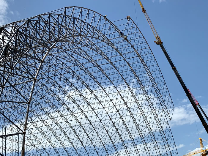 (2)网架加工前应对现场尺寸进行复测,确认无误后方可进行加工、安装;网架制作、运输、安装应遵守《空间网格结构技术规程》JGJ7-2010、《钢网架禹州螺栓球节点》JG/T 10-2009、《钢网架禹州螺栓球节点用高强度螺栓》 GB/T 16939-2016、《禹州钢结构禹州工程禹州施工规范》 GB50755-2012、《禹州钢结构禹州工程施工质量验收标准》 GB50205-2020。